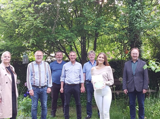 Bei der jüngsten Freiluft-Fraktionssitzung der ÖDP-Stadtratsfraktion: Viel Grün nicht nur im Garten, sondern auch auf dem Dach empfiehlt stellvertretende ÖDP-Kreisvorsitzende Johanna Seitz mit einem Leitfaden zur Dachbegrünung. Im Stadtrat wird über einen ÖDP-Antrag entschieden, der dies fördern soll. Foto: Seraphina Mangold