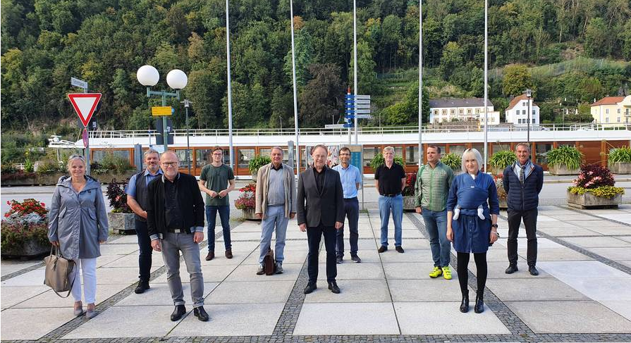 Die Stadträte von ÖDP und Grünen verlangen eine Klimaschutz-Sondersitzung des Stadtratsplenums (v. l.): Dr. Eva Gerstl, Michael Schöffberger und Paul Kastner (ÖDP), Matti Weigl und Karl Synek (Grüne), Urban Mangold (ÖDP), Dr. Achim Spechter (Grüne), Franz Prügl (ÖDP), Dr. Stefan Hafner und Stefanie Auer (Grüne), Oliver Robl (ÖDP).