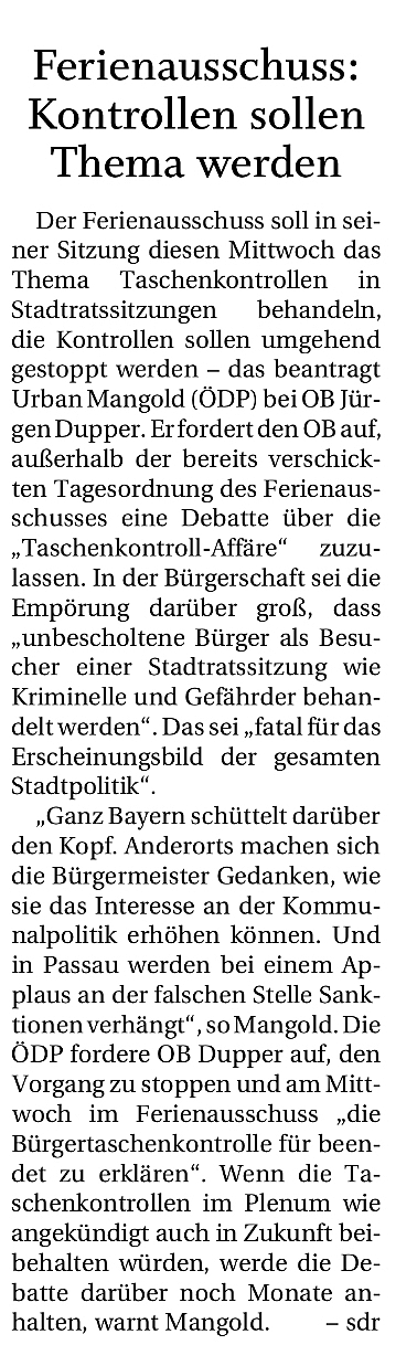 Ferienausschuss: Kontrollen sollen Thema werden