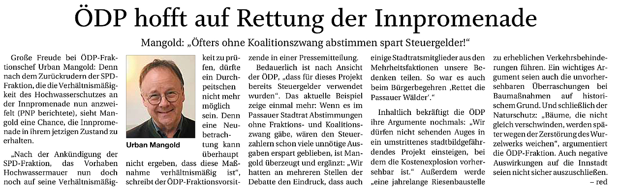 ÖDP hofft auf Rettung der Innpromenade
