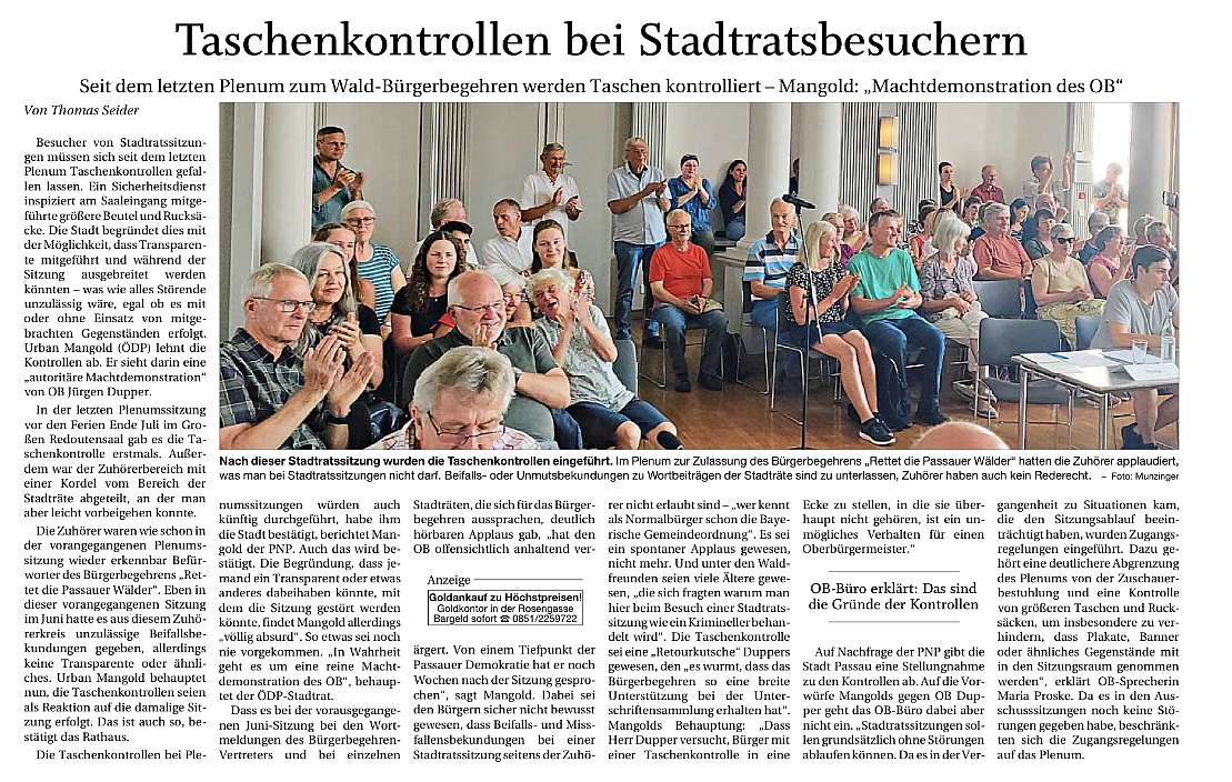 Taschenkontrollen bei Stadtratsbesuchern